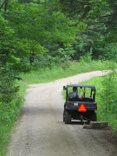 The Charlotte Lake cottage that we rented is on a very long private road which is maintained by local residents. We were fascinated by the simple and effective method for grading the road: an ATV dragging a metal grate weighed down by concrete blocks.